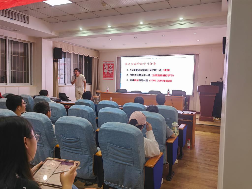 谭老师针对研究生入学考试最新宏微观形势进行分析,为同学们剖析了如何结合自身来选择考试院校、专业、地区,讲解了公共课各项学习任务,以及专业课的学习方案。现场同学们都认真的听课和做笔记,收获满满。