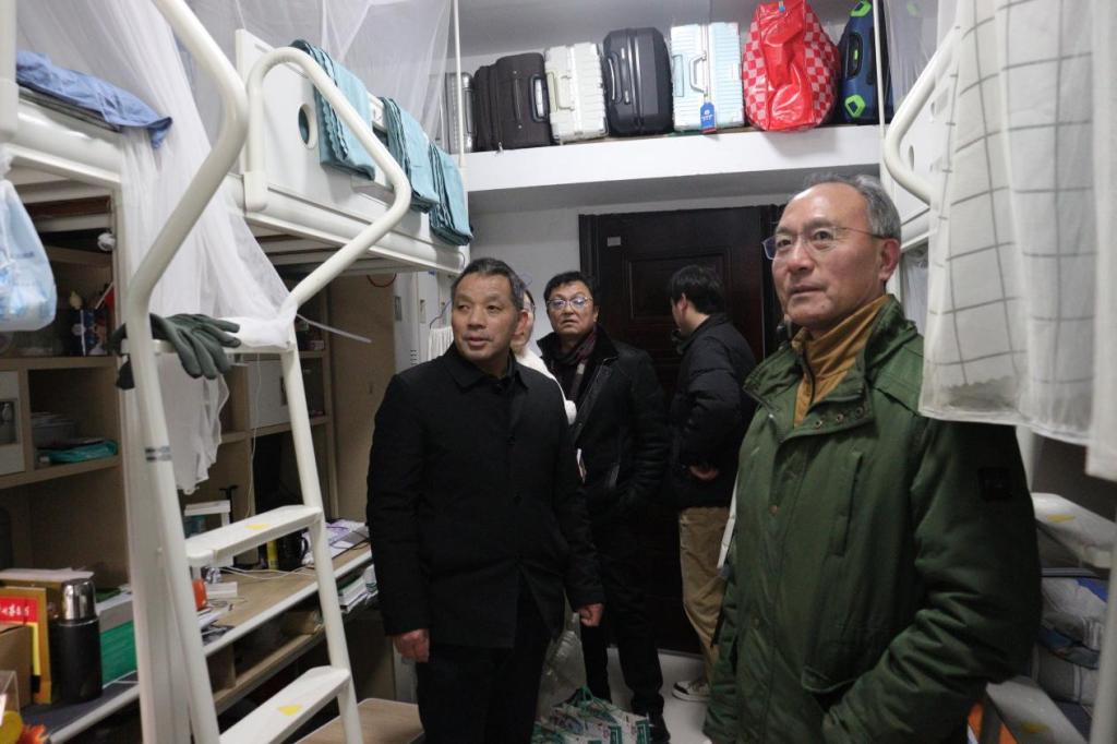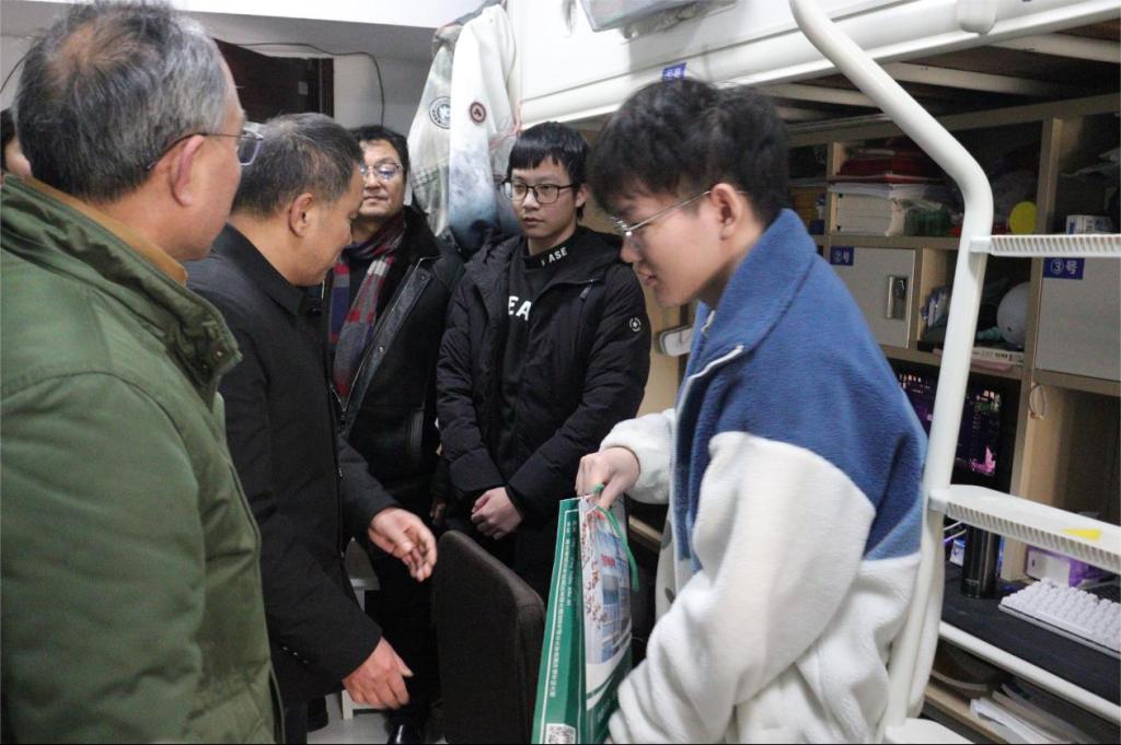 在二期A栋学生宿舍看望学生时,黄月辉书记鼓励同学们积极应对考研、考公、求职中遇到的困难,“同学们要发扬艰苦奋斗的精神,不断丰富和提升自我,遇到解决不了的问题也要及时与老师沟通交流。”