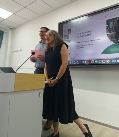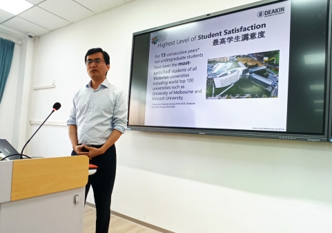 见面会上,黄书记鼓励同学们刻苦努力,筑梦前行,让自己的大学生活熠熠生辉。迪肯大学Janine Mc Burnie和Ben Horan院长介绍了迪肯大学生命和环境科学学院、工程学院的基本情况,Liz Weldon和Yanan Wang副院长向2024级新生介绍了迪肯大学与我校的合作项目,鼓励学生们在学好专业知识的同时,充分利用我校与迪肯大学合作办学平台,开拓视野。