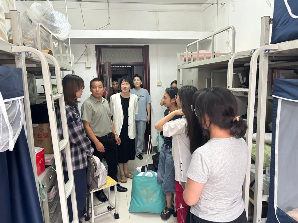 为切实了解学生入住情况,搬迁工作结束后,学院领导班子、班主任及辅导员一行,走访了普宿8栋与普宿9栋的部分宿舍,与同学们进行深入交流,细致询问回迁后的适应情况、住宿体验及生活需求。针对学生提出的宿舍设施、环境卫生等问题,老师们认真记录并第一时间与后勤部门沟通协调,推动问题尽快解决,全力为学生创造更舒适的生活环境。