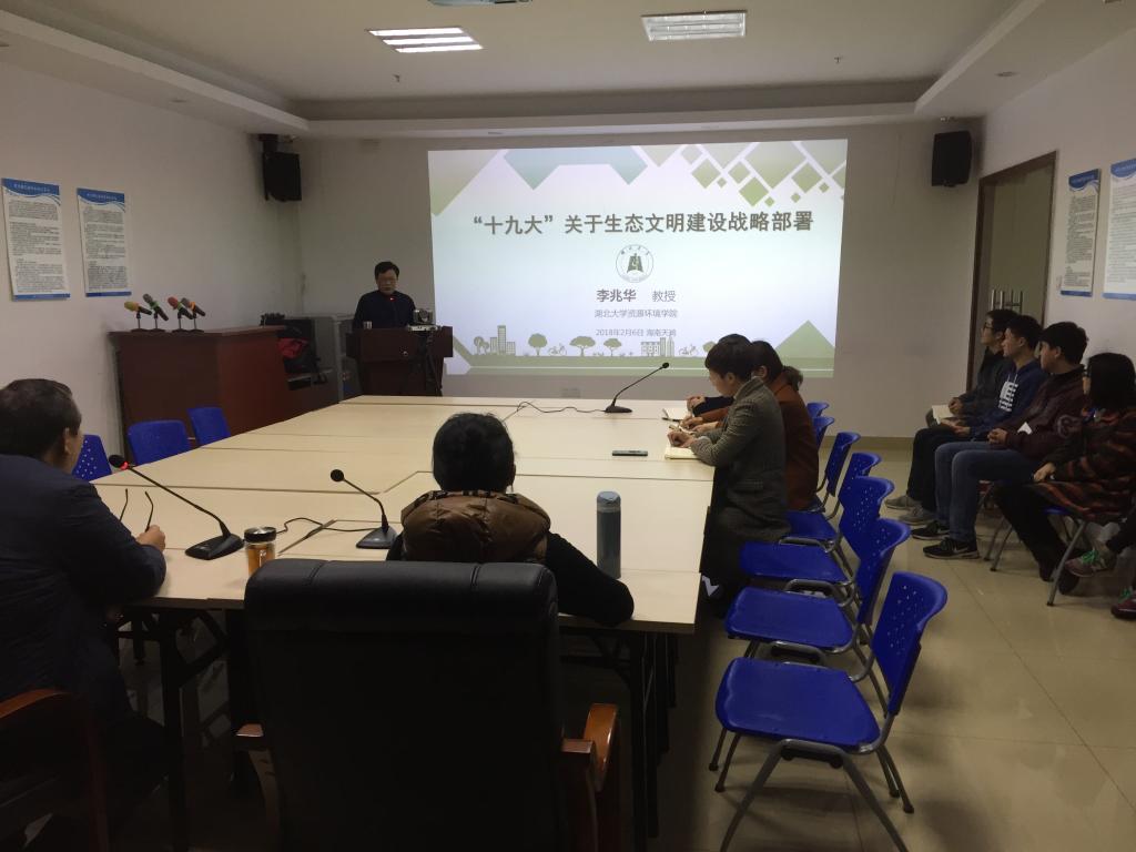 随后,天鸿公司负责人带领李兆华一行前往街心公园和屯城镇参观公司目前正在进行的水体生态修复工程和大陆村环境综合整治项目,项目负责人介绍了公司正在采用的RCERP技术和JBR技术在城镇和乡村黑臭水治理中取得的成效。返回公司后,李兆华作了《“十九大”关于生态文明建设战略部署》的学术报告,报告会由柏斌董事长主持,天鸿公司各部门负责人和设计部全体员工听取了报告,李兆华从中国生态环境问题、中国古代生态文明的主要经验、十九大报告中的生态文明建设战略部署三个部分进行了阐述,柏斌对李兆华来到公司带来学术讲座表示感谢,他提到报告深入浅出,既有系统的理论阐述,又有切身的实验经验传授,给公司员工开阔了思路,对于生态文明建设有更深层次的认识,在设计研发方面以重要的启迪和指导。