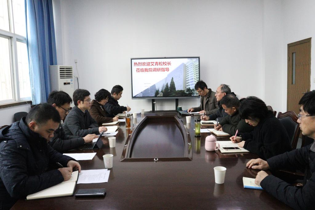 2月15日,校党委常委、副校长艾青松率科学发展研究院院长柳菁,副院长王源智、副院长李剑勇等一行到我院对学院科研工作开展调研座谈。学院党委书记黄月辉、院长彭宇、副书记李岚、代理副院长刘杰及教授代表邓文胜等参加了此次会议。