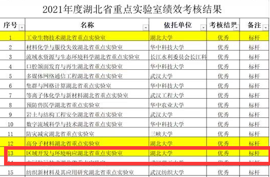 3月14日,湖北省科技厅发布了2021年度关于基础研究平台绩效考核的结果,我院“区域开发与环境响应湖北省重点实验室”在2021年度绩效考核中再获优秀。