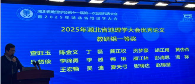 闭幕式宣布2025年湖北省地理学大会优秀论文获奖名单,我院张明达老师和赵锦慧老师作为第一作者的论文均荣获一等奖。