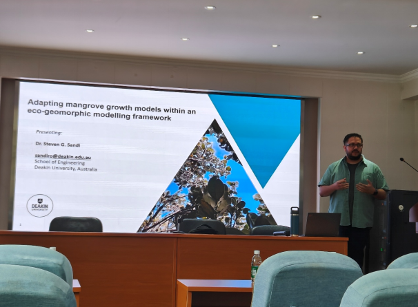 3月24日,我院在一楼学术报告厅内举办了一场题为“在生态地貌模型框架内调整红树林生长模型”的学术讲座,澳大利亚迪肯大学工程学院Steven G. Sandi博士担任主讲人。