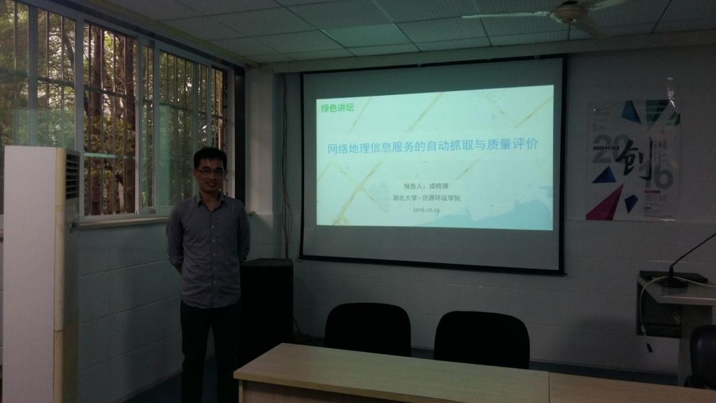 10月19日,我院成晓强老师为大家做了名为“网络地理信息服务的自动抓取与质量评价”的学术报告。16级研究生和地理信息系统专业老师参加了此次报告。