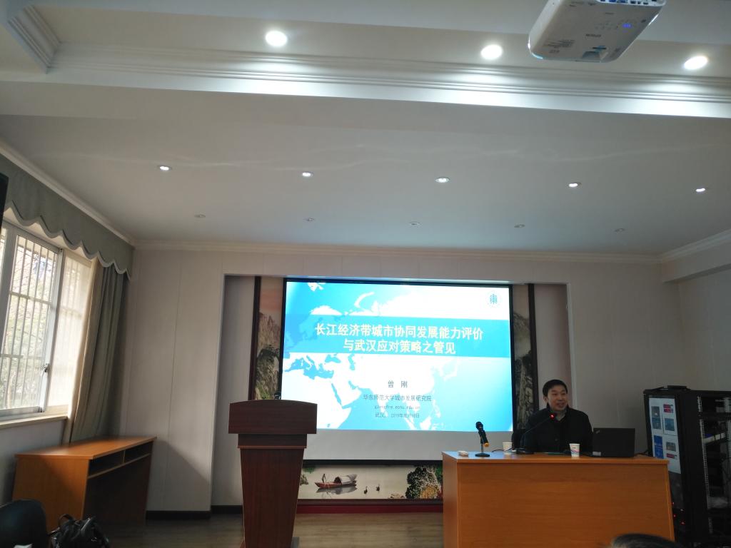 2019118日上午,华东师范大学曾刚教授为我院师生做了题为《长江经济带城市协同发展能力评价与武汉应对策略之管见》的学术报告。报告由李海波院长主持,部分老师和研究生共同参与。
