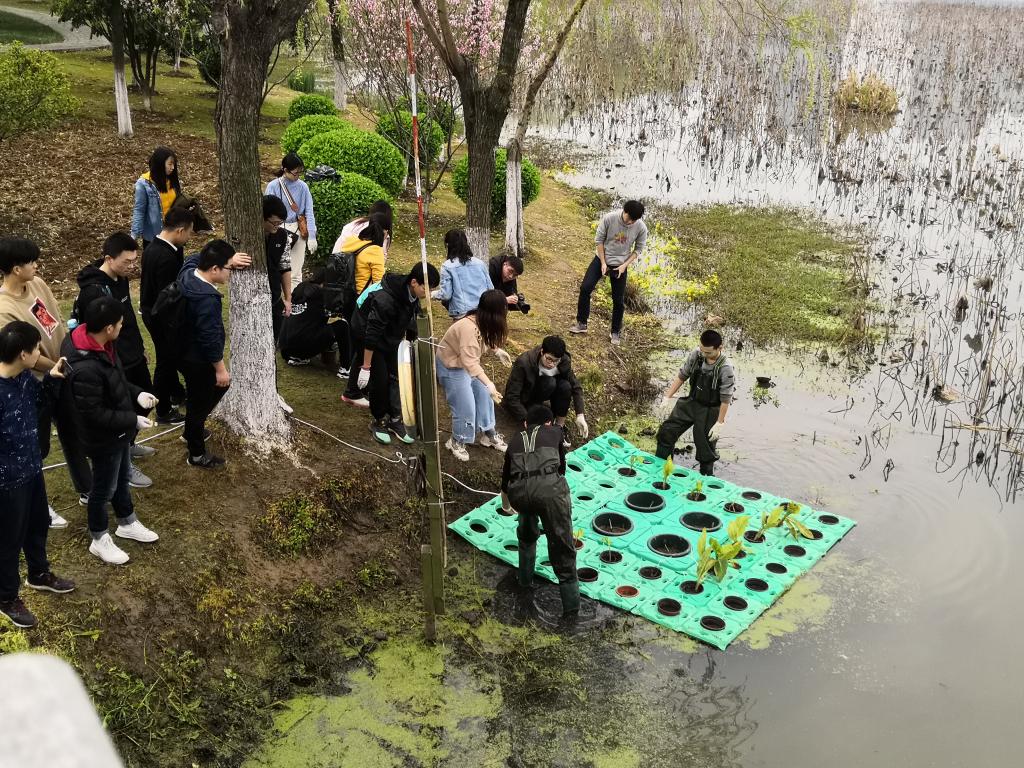 为改善沙湖水质,鼓励大学生利用自己的专业能力为社会做贡献,2019年3月23日上午8点,新一轮的浮岛维修活动顺利开展。英国上市公司365志愿者协会的成员们与报名参加的志愿者于资环院门口集合,前往本次活动的地点。