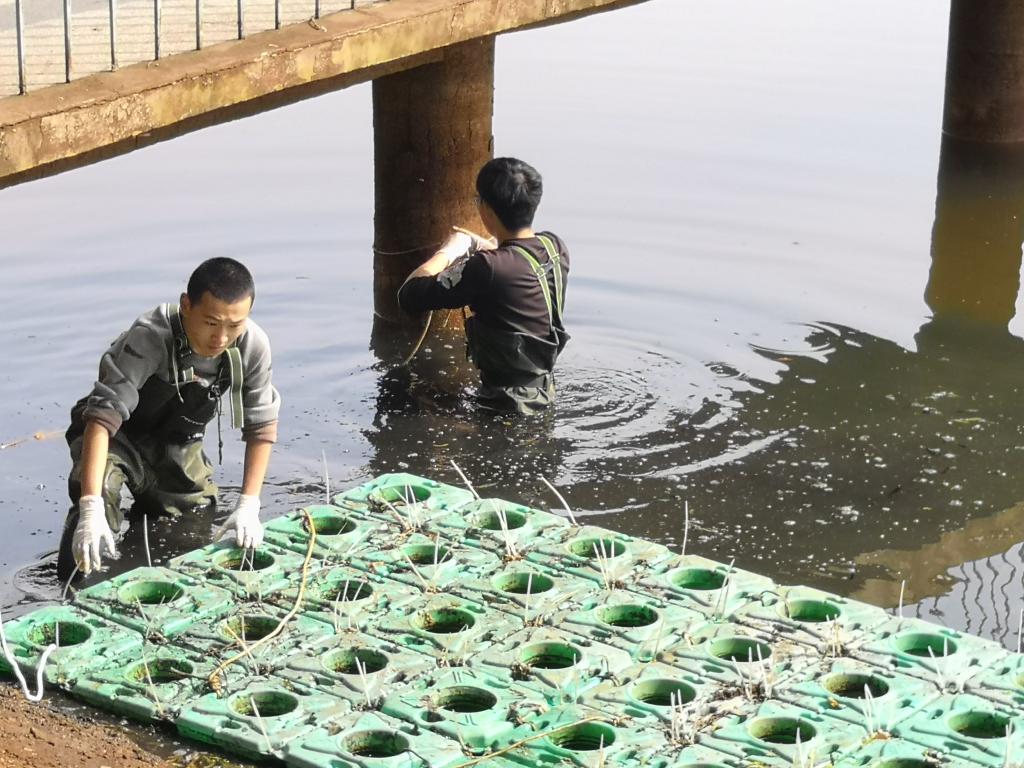 本次活动成员被分成两组,前往沙湖雁桥和湖心亭进行相关工作。湖心亭处情况较为良好,雁桥处的浮岛出现损坏,于是志愿者们利用就近环境的材料制作新的浮岛,女生制作培养盆,男生拼接浮岛。新的浮岛分为三层,第一层是生长和吸附氮磷能力强的荷花,第二层是除硫除氯且外形美观的美人蕉,第三层是根系发达,能够吸收水中的氨和二氧化碳,增加水体溶氧量的空心菜。成员们齐心协力,更有两名男同学毛遂自荐,下水更换浮岛。