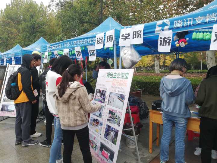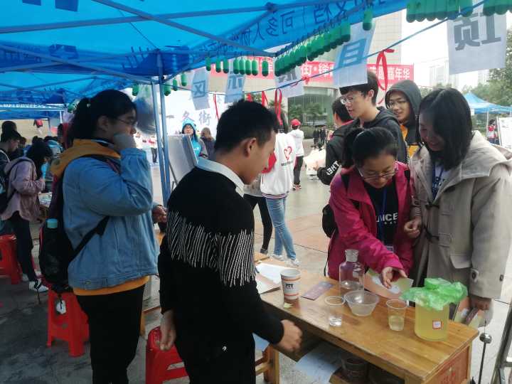 为了迎接这次活动,资环院的志愿者们准备了许多充满学院特色的游戏。“模拟污水处理”就是其中之一,它通过简单的化学原理向前来参与活动的同学展现了人类造成污染和处理污水的过程,旨在提高同学们的环保意识。、除此之外,资环院志协还设置了多个展板展示其特色活动,如“沙湖环保志愿队”“垃圾投进趣”“环保课堂”等。许多同学在做完游戏后积极沟通工作人员,纷纷表示希望参加更多的志愿活动。