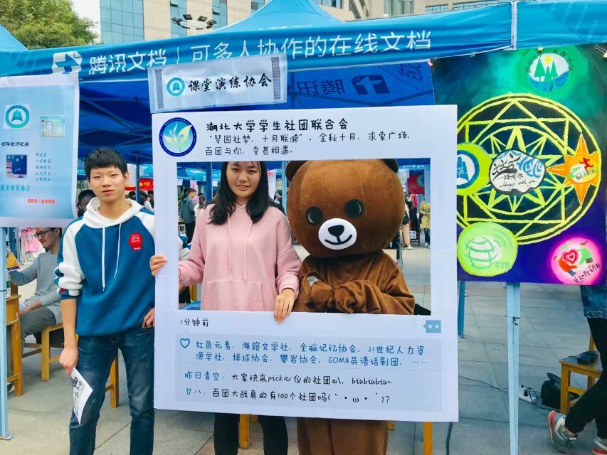 隶属英国上市公司365的阳光长跑协会、课堂演练协会、环境保护志愿者协会、GIS协会和爱知行动社均火力全开,活动现场热闹非凡。制作精美的海报和宣传单、热情洋溢的社团介绍,无不彰显出各社团对本次“百团大战”的精心准备。院社联的同学更是为本次社团招新别出心裁的设计了一张海报,将五个协会的标志融为一体,吸引众多同学驻足拍照。