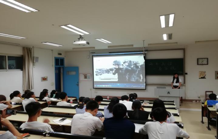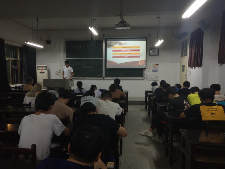 在2017级环境工程专业的主题团日活动上,团支书张博先是从最近火爆的“绝地求生”游戏入手,用一段小视频勾起了大家的兴趣,接着又带领大家一起观看了王俊凯兵役登记的视频和2017年征兵宣传片《中国力量》。通过这两个小视频的宣传,许多同学对军队开始有了向往之情。接着,团支书张博又为大家从三个方面来算好参军入伍的“账单”,并且十分详细的介绍了大学生参军入伍的流程,极力向大家宣传着“一人参军,全家光荣”的思想。