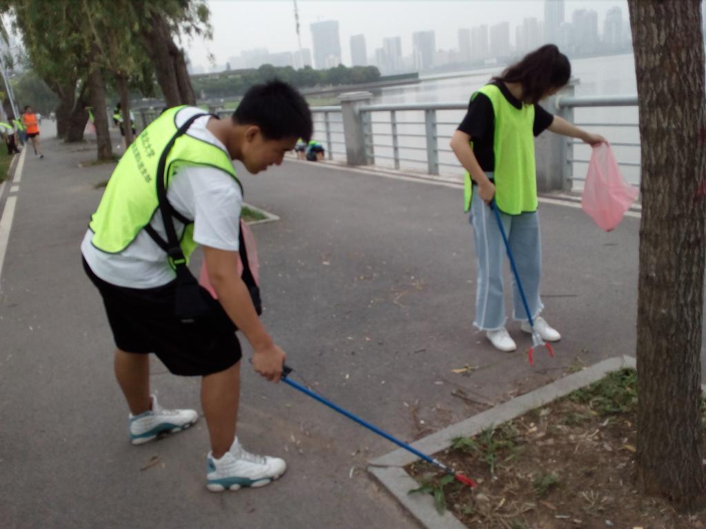 早上8点,志愿者们在学校集合后一同前往沙湖公园,换上志愿服,领取活动工具夹子和垃圾袋后,便兵分两路,在相互配合中展开行动。志愿者们沿路前进,不时弯下腰去用工具挖一半在外、一半被埋进土里的塑料袋、纸屑和烟头等,由于受前段时间雨水影响,有的垃圾直接用手才能更好的清理干净。更有一些志愿者冒着风险翻越护栏捡拾沿岸的垃圾,然后志愿者们再将垃圾分类放进不同规格的垃圾袋中,垃圾主要分成两类:烟头、纸屑和其它,最后称重登记,烟头虽然重量不大,可数量巨大,而其它类垃圾总重超过十斤,这还只是很小一部分。这些垃圾随手丢出去很容易,但从广阔的土地上捡回来却很难。经过三个小时的工作,沙湖公园及其周围的垃圾杂物被清理干净,环境卫生有了明显的改观。在行进路上,一位路人老爷爷主动提出要给志愿者们拍照,并称赞道:“爷爷看到了你们爱护环境的心,你们为学校增光了!