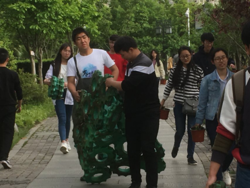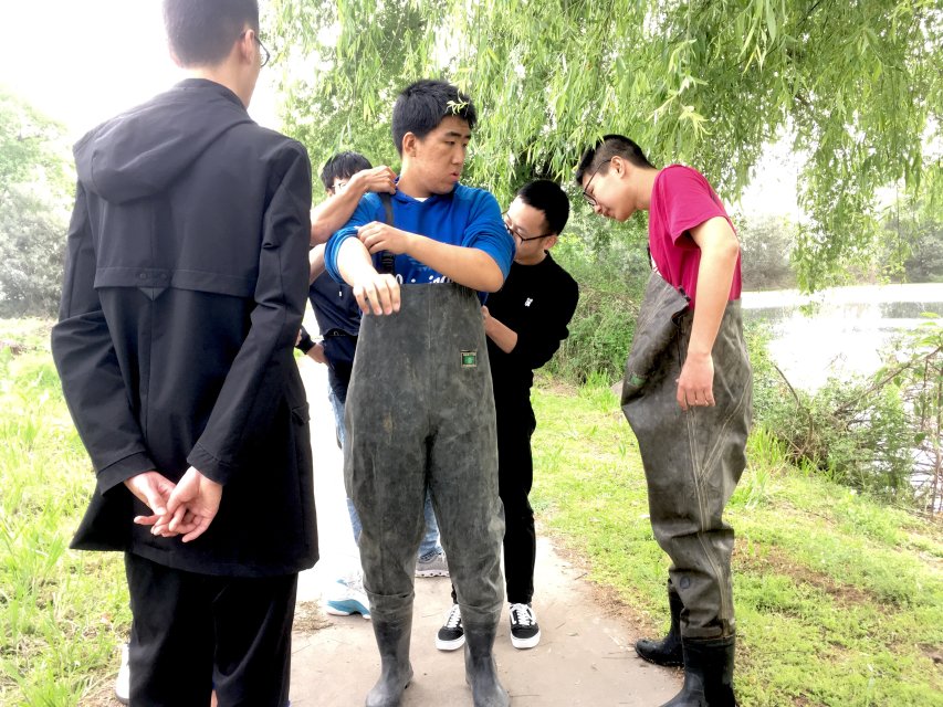 紧接着志愿者们来到了雁桥,由于水位上涨,雁桥的浮岛难以上岸,志愿者们只能留到下次再进行,便前往了小木屋。此处浮岛长势迅猛,根茎粗大,大多数已经损坏,志愿者们将浮岛捞起后重新捆绑下水。因为天逐渐变热,沙湖水也开始散发着一股臭味,而且水里很脏乱,蚊虫也随处可见,志愿者们顶着这样恶劣的条件空手上阵,甚至部分人手上都出现了一些伤口。在修浮岛过程中,沙湖里的很多行人向志愿者们咨询与浮岛有关的问题,志愿者们向行人们简略介绍了浮岛的基本情况。此外,有一位初三学生也加入了志愿者的队伍中。整个下午,志愿者们各司其职,一直在忙碌。