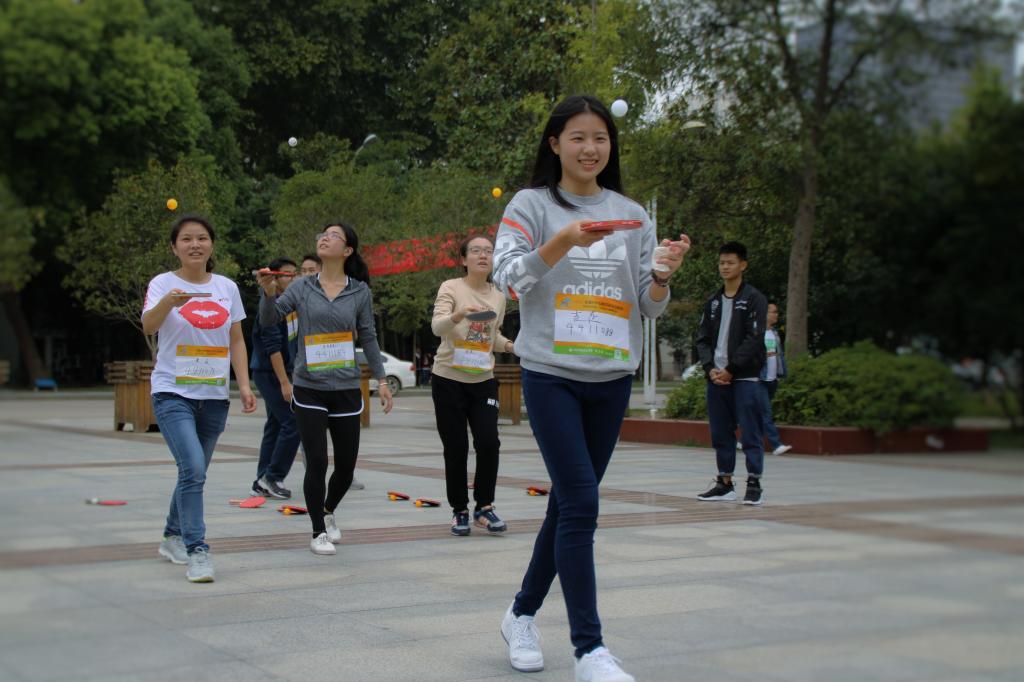 随着一声哨响,三支队伍率先开跑,由14环工的四位汉子组成的“小胖胖二队”一马当先,直奔第一个目标点,途经校门时顺利完成了“扮时钟”游戏。紧随其后的“随风飞扬队”同样不甘示弱,四个女生一路不停歇,大家争先恐后的向前跑去。后续几支参赛队伍逐渐追赶上来,依此完成“夹气球”、“托乒乓球”游戏。最后,大家纷纷先后到达最后一个目标点——二号体育场,并且完成了“你比我猜”的游戏,团体马拉松在围绕体育场跑道奔跑一圈中结束。