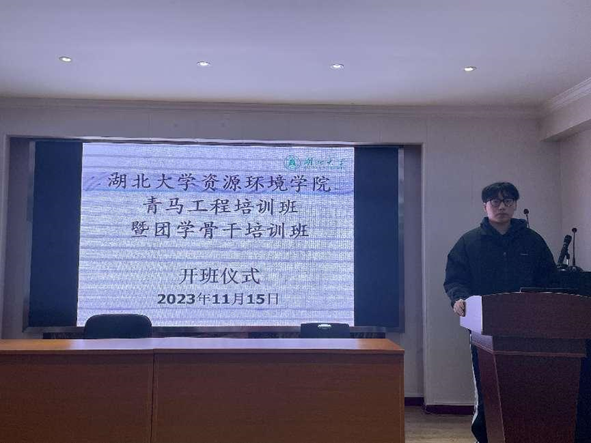 11月15日晚上19:00,我院“青马工程”暨团学骨干培训班于一楼会议室举行。学院团委、学生会、沙湖环保志愿队主要负责人等院级团学组织主要负责人及各学院团支部书记等团学骨干代表参与开班仪式,由学院团委学生副书记毛旭添主持活动。