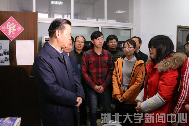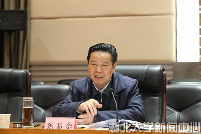 12月28日,省政协主席张昌尔来校考察调研,与学校政协委员、师生代表座谈,了解学习贯彻党的十九大精神、加强大学生思想政治工作情况。张昌尔强调,要以习近平新时代中国特色社会主义思想为指导,切实增强“四个自信”,牢牢把握“四个服务”方向,坚持立德树人,把思想政治工作贯穿教育教学全过程各方面,为湖北全面建设社会主义现代化强省、实现中华民族伟大复兴中国梦凝聚青春力量。