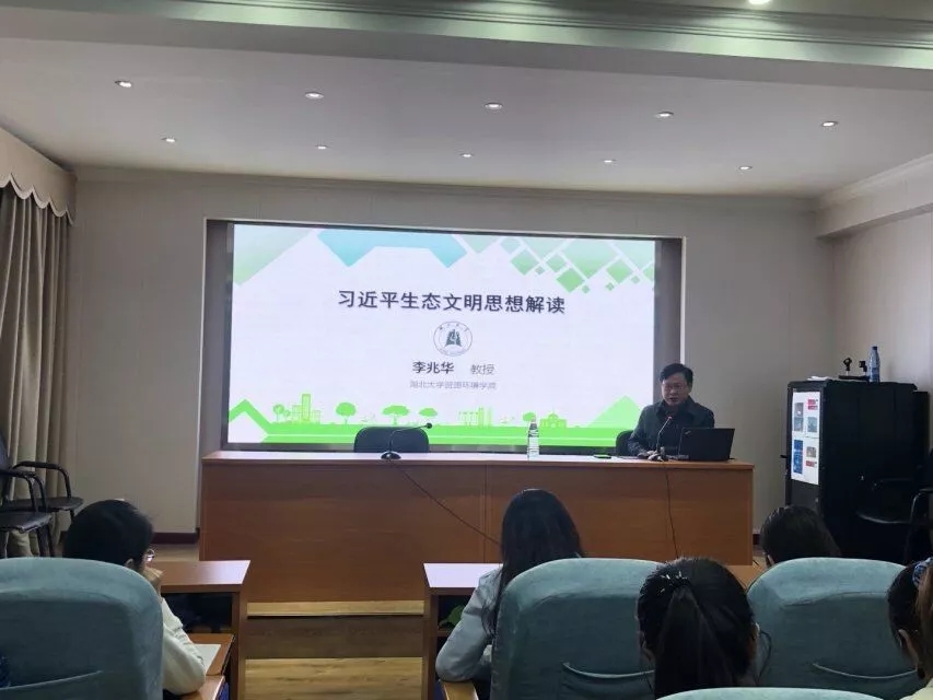 开班仪式结束后,院党委书记李兆华为同学们进行了首场辅导报告。他结合生态文明建设的时代背景,对习近平生态文明思想进行了详细解读。他强调,习近平总书记的“两山论”深刻地揭示了生态系统的生态价值和经济价值的双重属性,生态文明不仅关乎民生、更关乎我们人类的生存与发展。他指出,国家全面进行生态文明建设,资环学子大有可为,并希望资环学子结合自身专业特点,践行习近平生态文明思想,为生态文明建设贡献自己的一份力量。