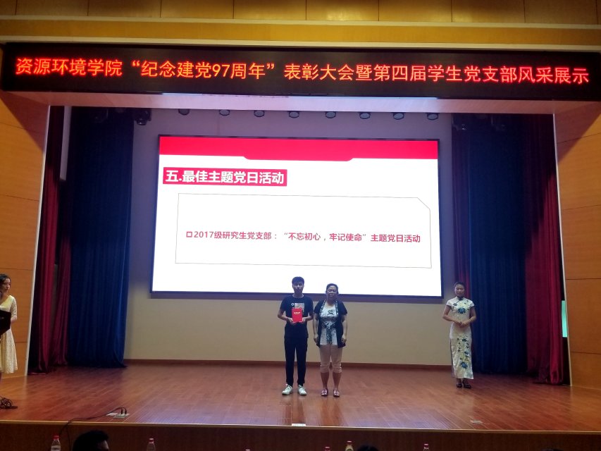 这次党支部风采展示活动,不仅增进了各支部的了解,也展现了新时代下的资环院大学生共产党员们的精神风貌,引导和呼吁同学们积极向党组织靠拢,不断深入学习党的相关理论知识,为党的建设努力奋斗!(通讯员:徐登寻 王书卉 照片来源:郑契洲 徐登寻 )