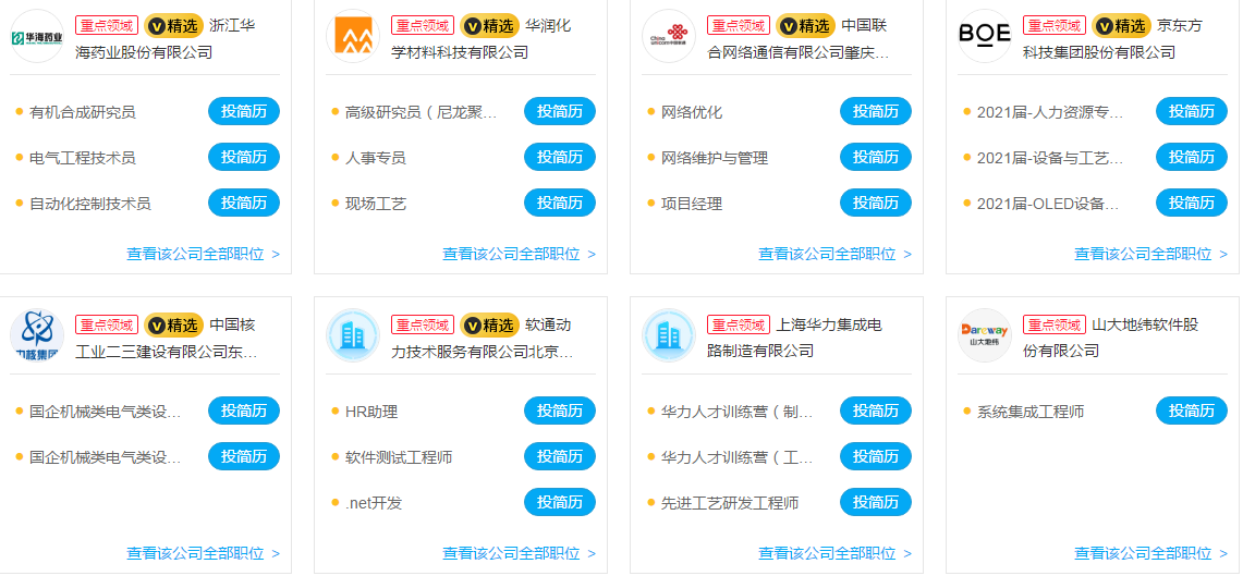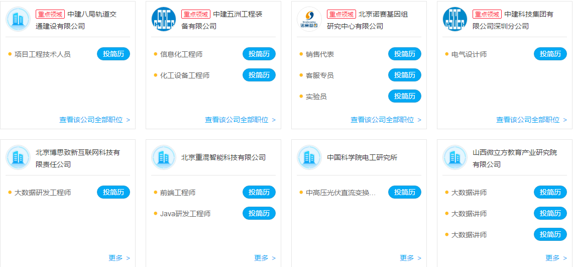 部分招聘单位截图如下: